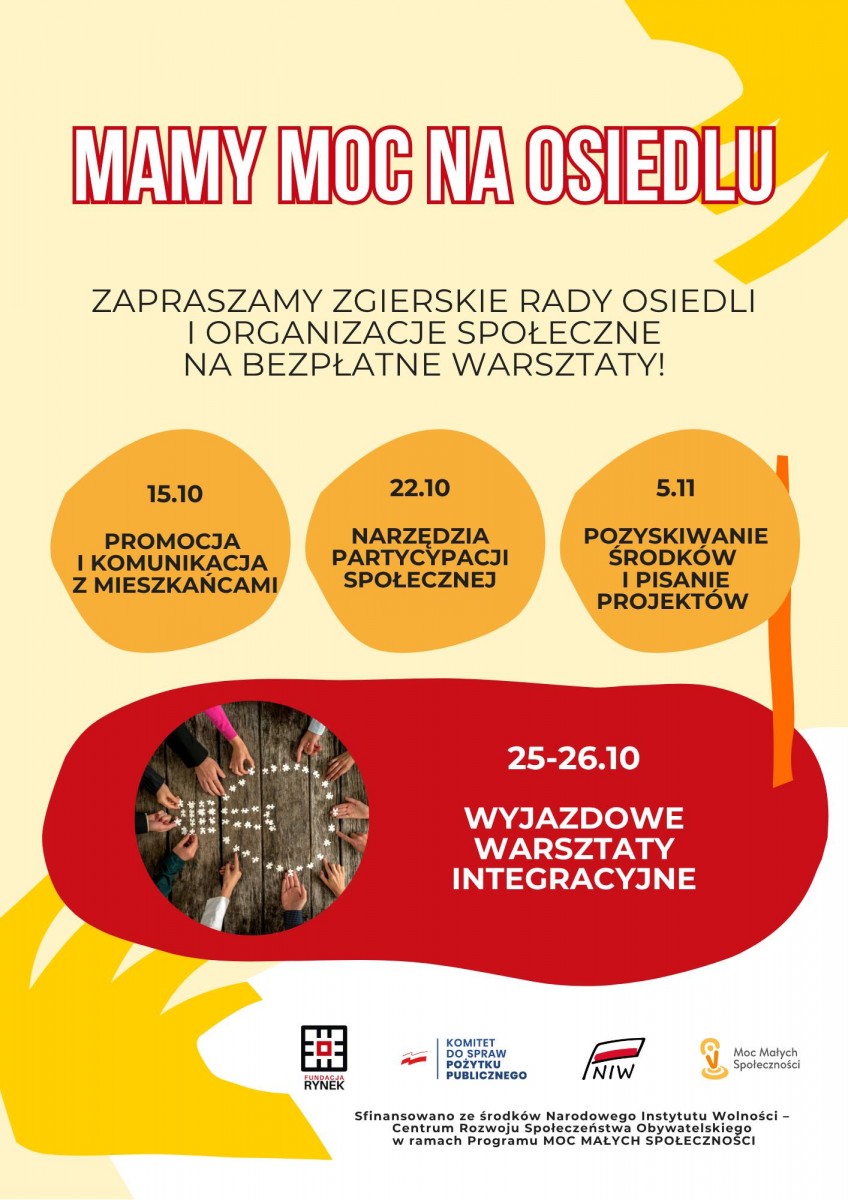 Zapraszamy członków rad osiedli oraz zgierskich organizacji pozarządowych do udziału w bezpłatnych warsztatach w ramach projektu "Mamy moc na osiedlu":
