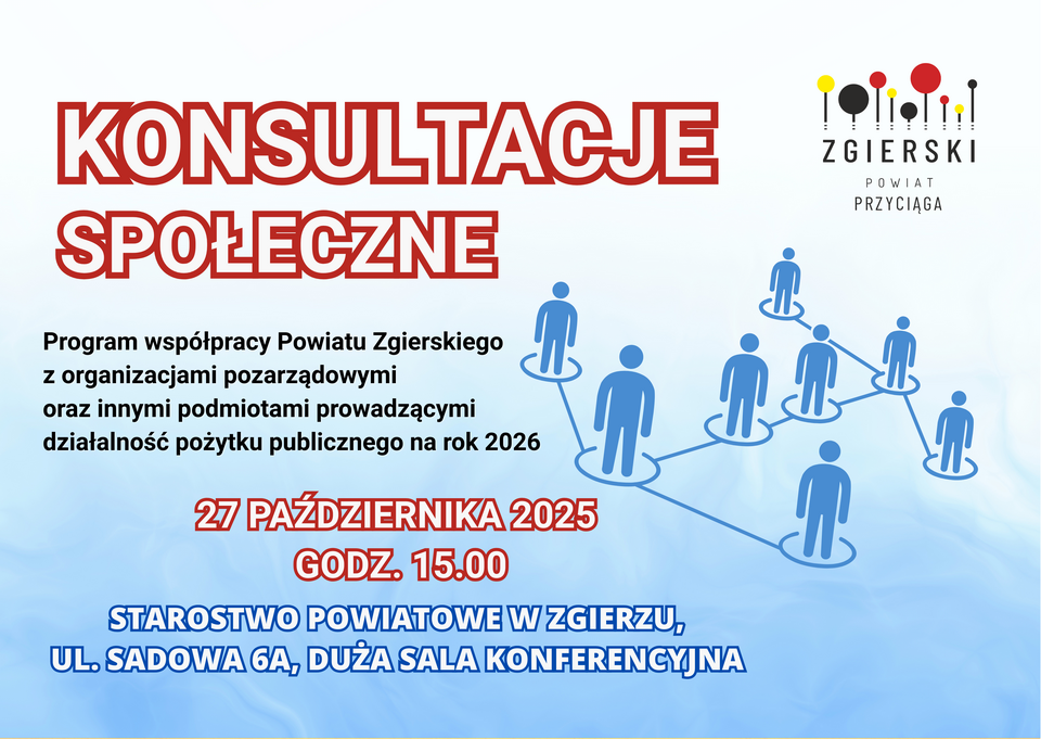 Konsultacje "Programu współpracy Powiatu Zgierskiego z organizacjami pozarządowymi oraz innymi podmiotami prowadzącymi działalność pożytku publicznego na rok 2026".