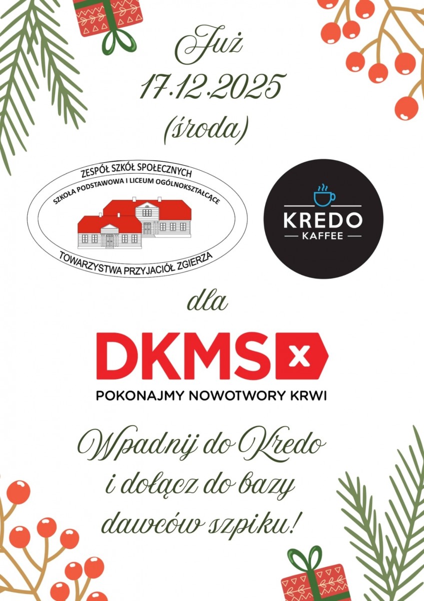 17 grudnia w Kredo Kaffee w Zgierzu młodzież Zespołu Szkół Społecznych TPZ będzie prowadzić akcję rejestracyjną #KOMÓRKOMANIA DKMS.