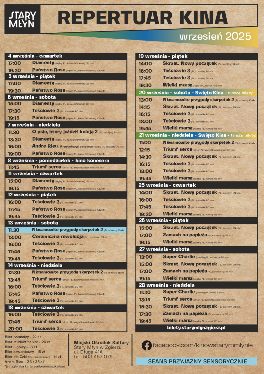 Bilety do nabycia w Starym Młynie (przed seansem) lub online w cenie: