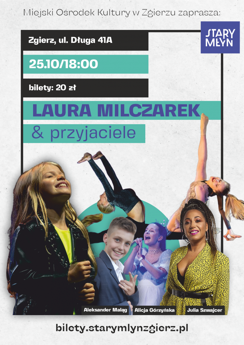 Nie musimy szczególnie podkreślać, że w MOKu bardzo bliskie nam jest wspieranie i promowanie zdolnych, zgierskich artystów i artystek. Dlatego z ogromną radością zapraszamy wszystkich na koncert młodej wokalistki ze Zgierza - LAURY MILCZAREK, uczestniczki "The Voice Kids", który odbędzie się 25 października 2022 r. o godz. 18:00.