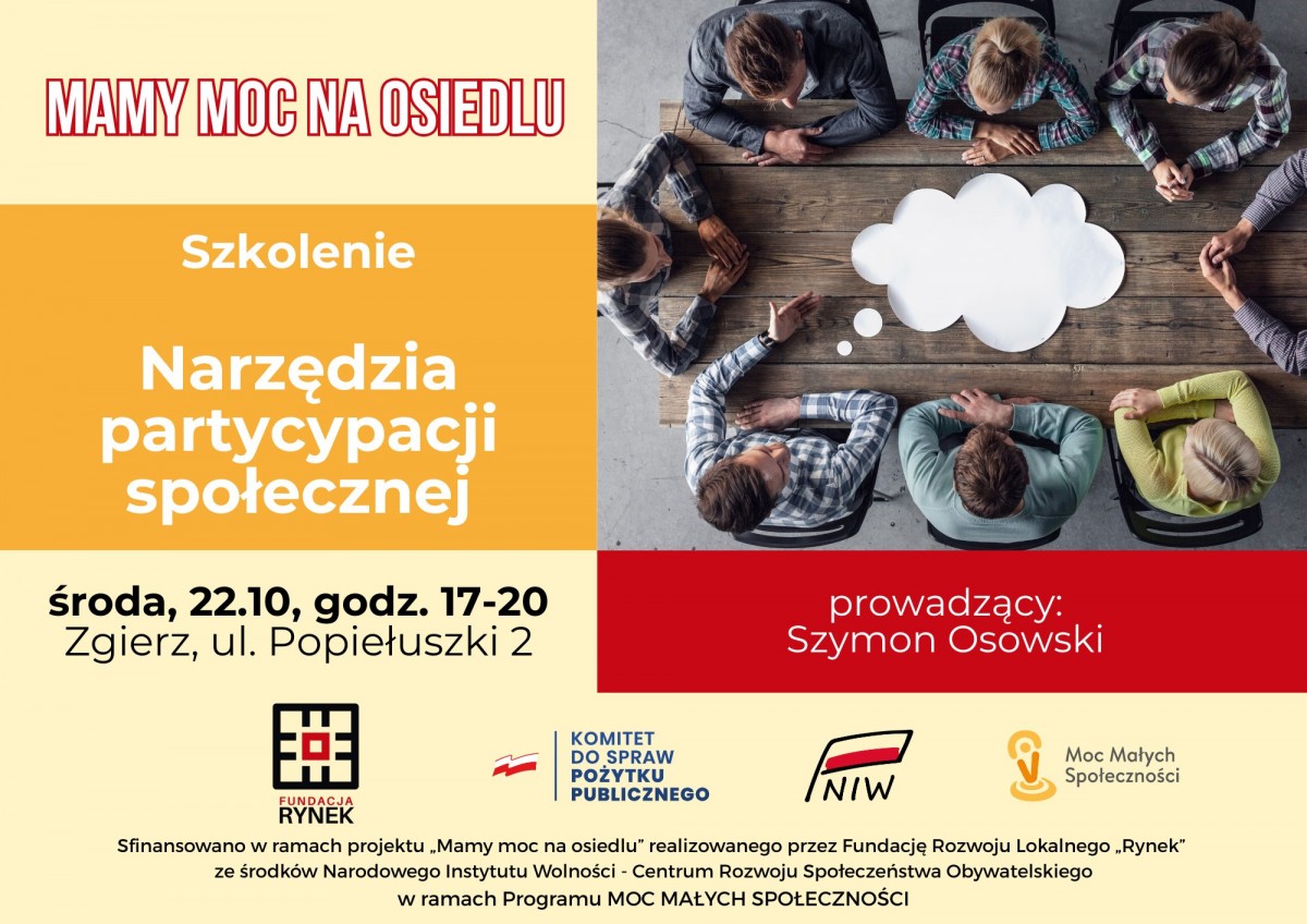 Zapraszamy członków rad osiedli oraz zgierskich organizacji pozarządowych do udziału w bezpłatnych warsztatach w ramach projektu "Mamy moc na osiedlu":