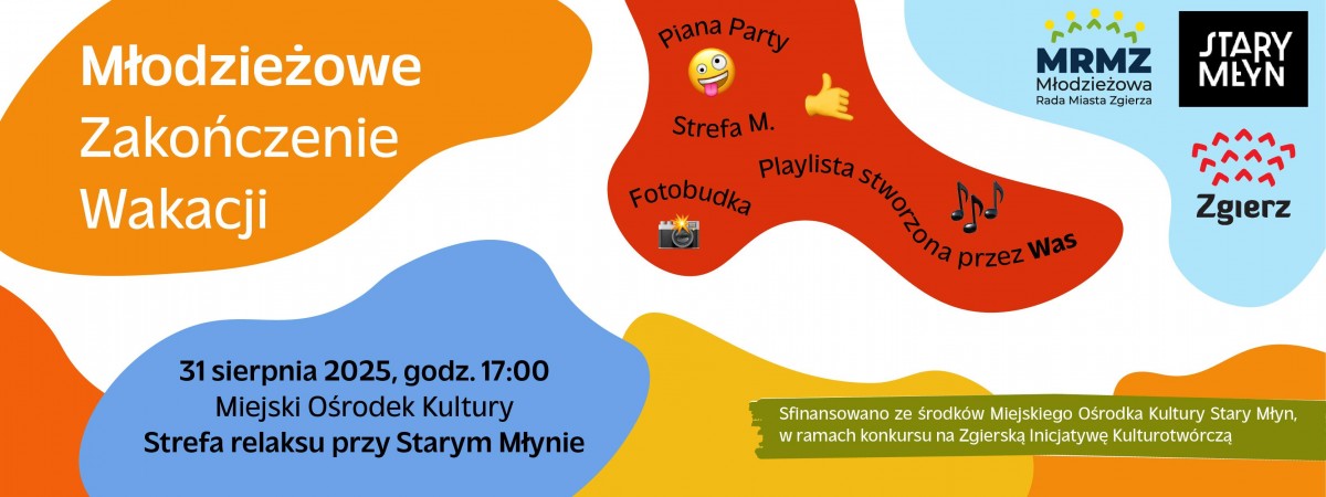 Z tej okazji zapraszamy Was na Młodzieżowe Zakończenie Wakacji 2025! Na jeden dzień zamienimy przestrzeń dookoła Starego Młyna w iście młodzieżową strefę.