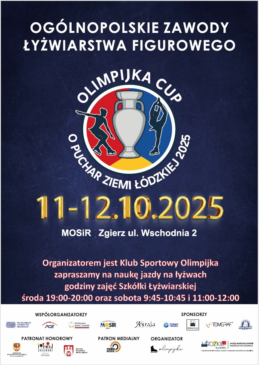 W dniach 11-12 października 2025r. w Zgierzu odbędzie się pierwsza edycja zawodów "Olimpijka Cup o Puchar Ziemi Łódzkiej" - wydarzenia wspisanego do oficjalnego kalendarza ogólnokrajowych zawodów Polskiego Związku Łyżwiarstwa Figurowego. Zgierz stanie się areną zmagań młodych łyżwiarzy z całej Polski w widowiskowej rywalizacji sportowej.