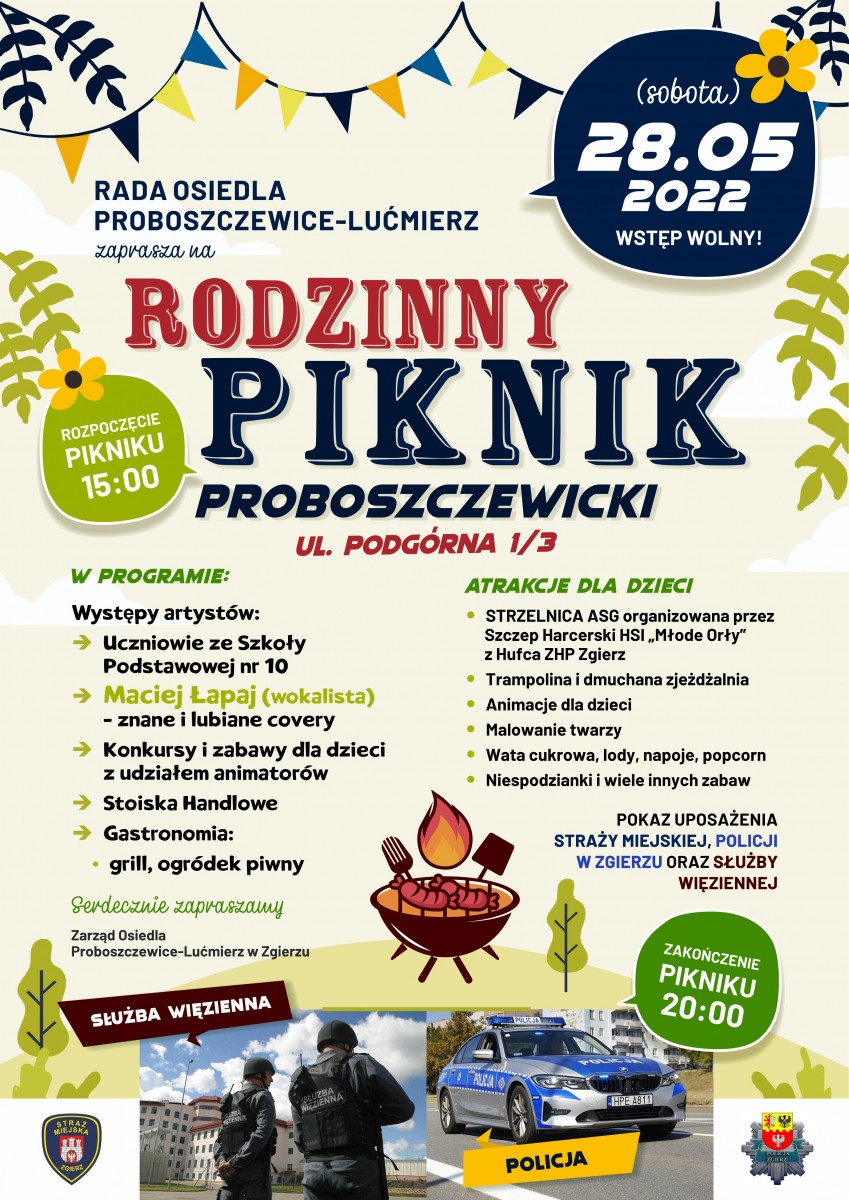 Coroczny Rodzinny Piknik Proboszczewicki zaplanowany na dzień 28 maja przeniesiony na dzień 11 czerwca 2022 r. (sobota)