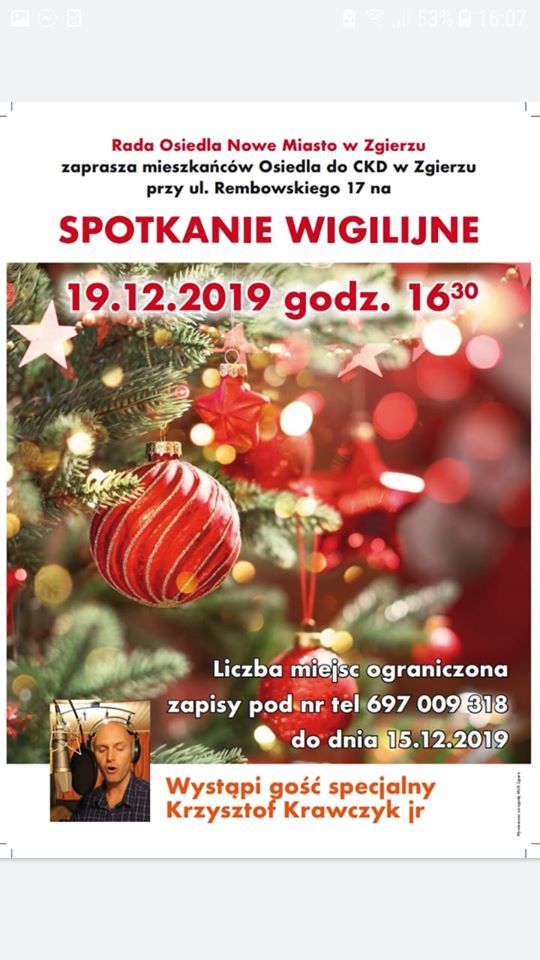 Serdecznie zapraszamy mieszkańców Osiedla Nowe Miasto w Zgierzu na Spotkanie Wigiljne.