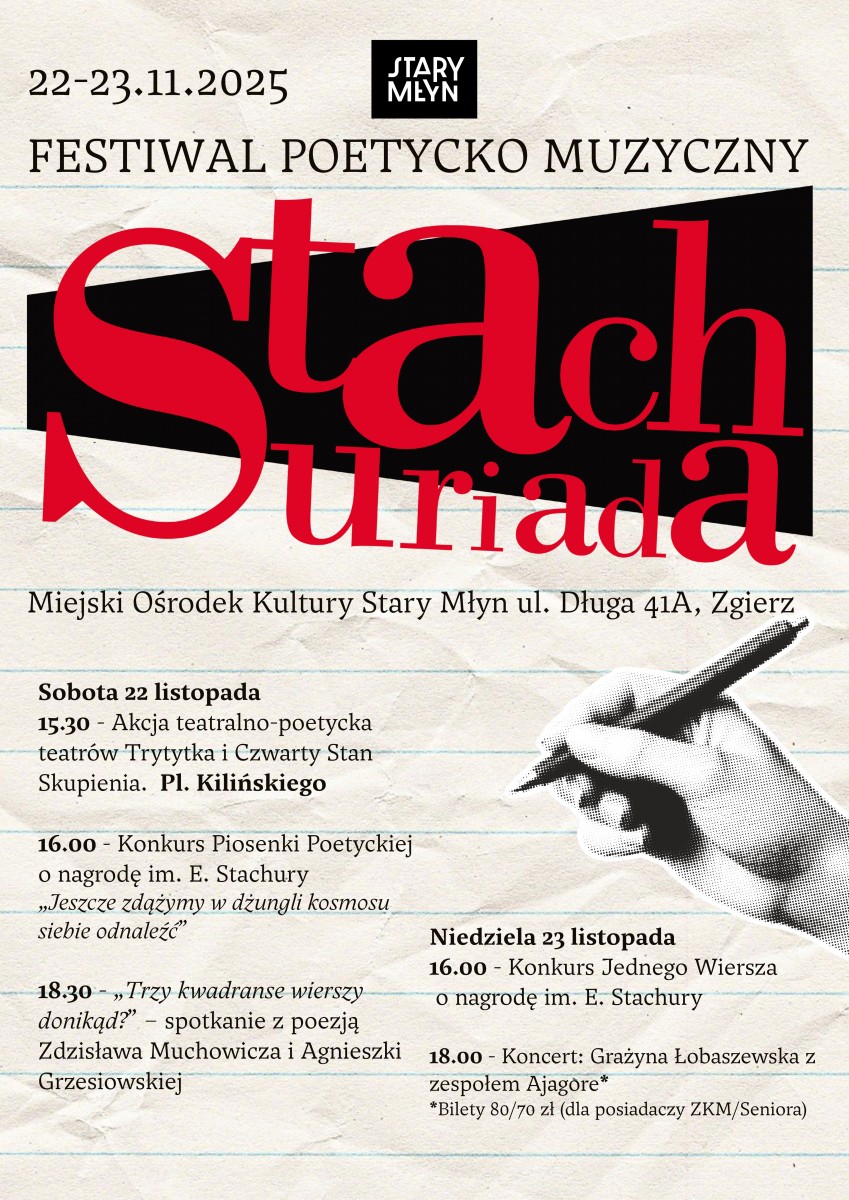 godz. 16:00 - Konkurs Jednego Wiersza o nagrodę im. Edwarda Stachury
