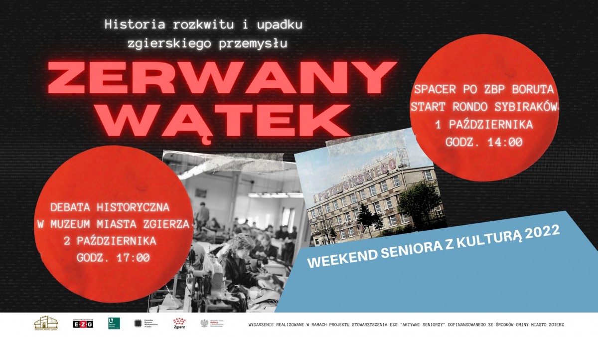 2 października (niedziela) zapraszamy do Muzeum Miasta Zgierza, gdzie o godzinie 17:00 rozpocznie się spotkanie w formie otwartej dyskusji z okazji dnia Tkacza i Weekendu Seniora z Kulturą pt. "Zerwany wątek - historia rozkwitu i upadku zgierskiego przemysłu".