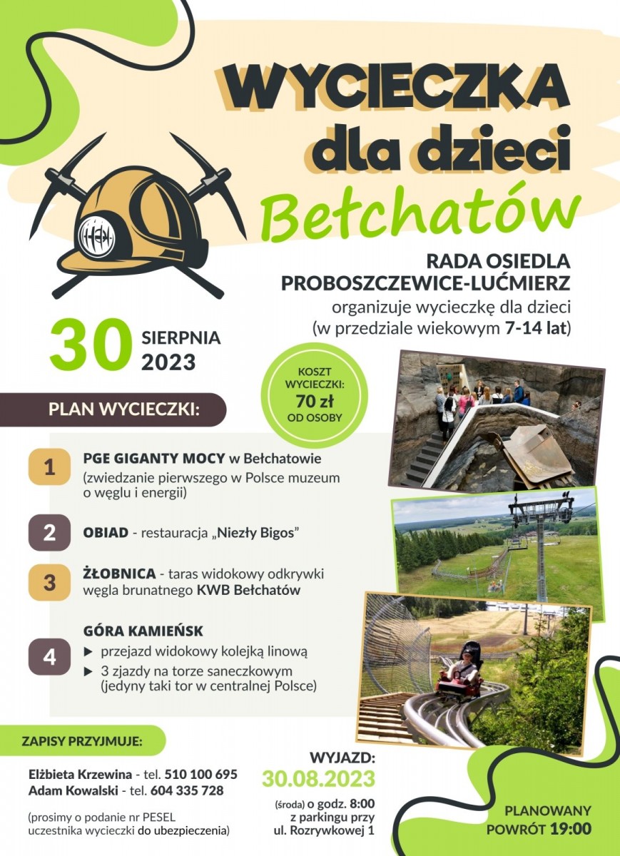 Rada Osiedla Proboszczewice-Lućmierz serdecznie zaprasza dzieci w wieku 7-14 lat na "Wycieczkę dla dzieci do Bełchatowa".