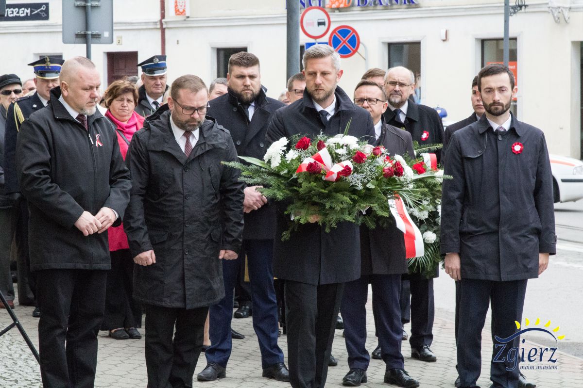 Władze miasta składają kwiaty pod tablicami pamiątkowymi