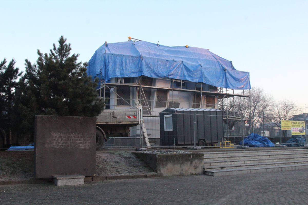 Wygląd pomnika w styczniu 2018 roku w trakcie prac remontowych