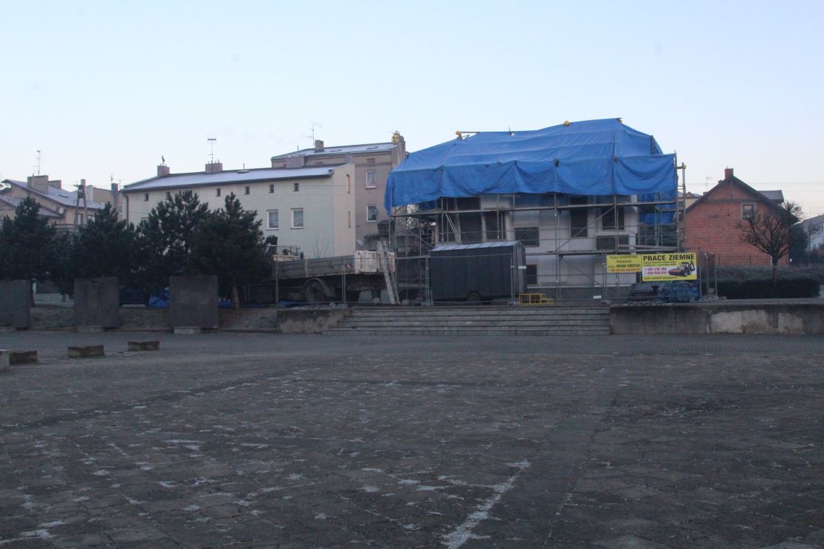 Wygląd pomnika w styczniu 2018 roku w trakcie prac remontowych