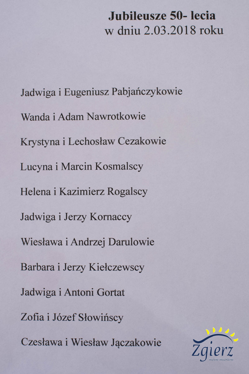 Lista wyróżnionych za długoletnie pożycie małżeńskie