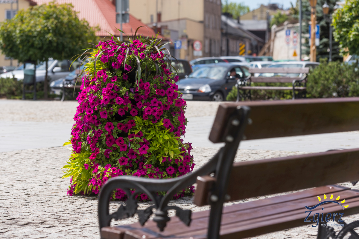 Kwitnące kwiaty na pl. Jana Pawła II
