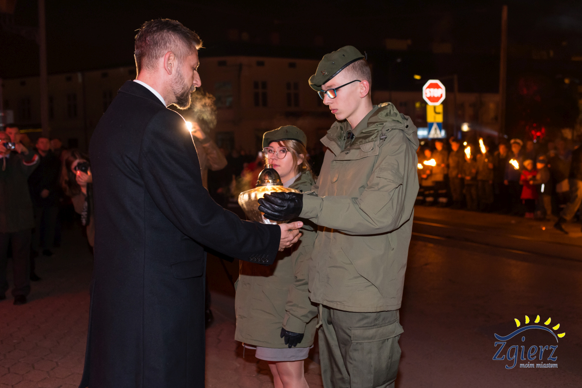 Złożenie Ognia Niepodległości przywiezionego przez zgierskich Harcerzy z Kostiuchnowskiego Pola
