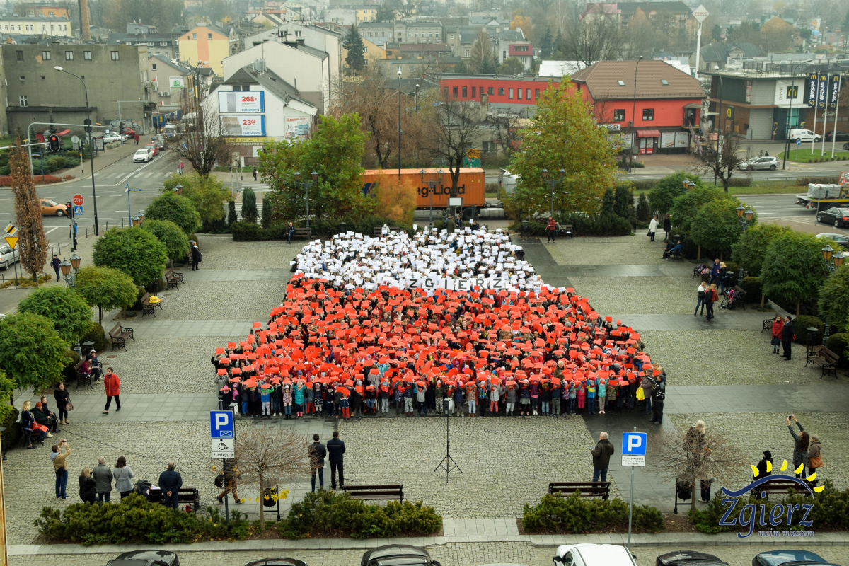 Żywa Flaga na placu Jana Pawła II w Zgierzu - widok z góry