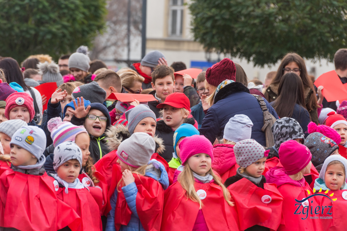 Dzieci i młodzież zgromadzona na pl. Jana Pawła II w Zgierzu