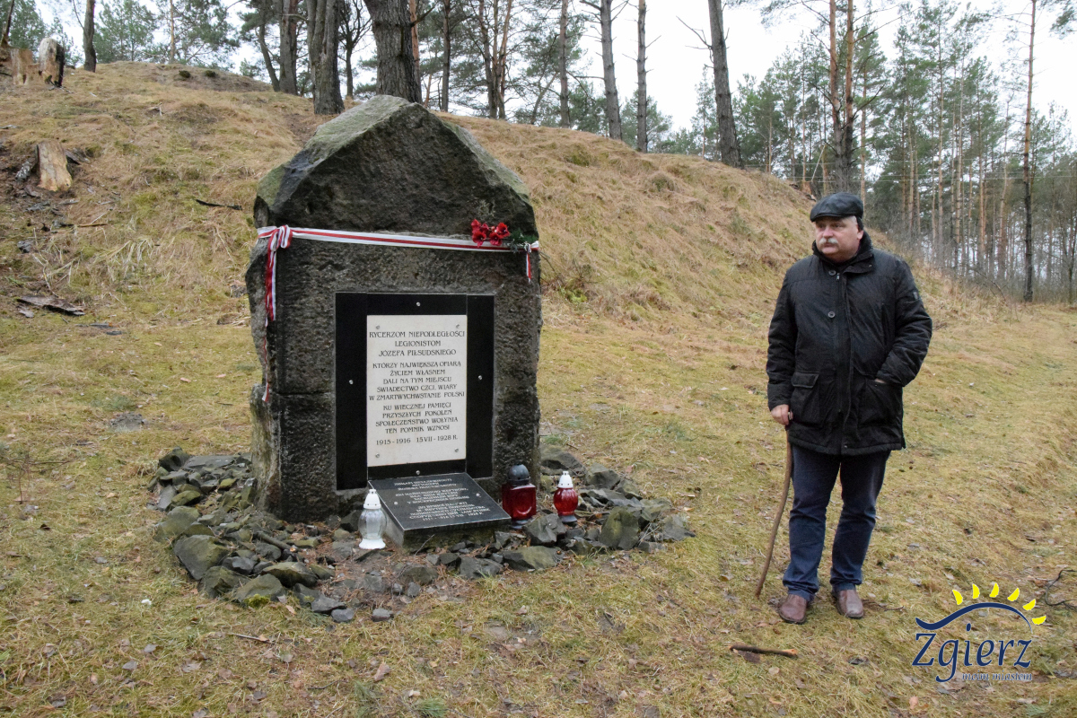Przy tablicy pamiątkowej przed Polską Górą stoi Jarosław Górecki