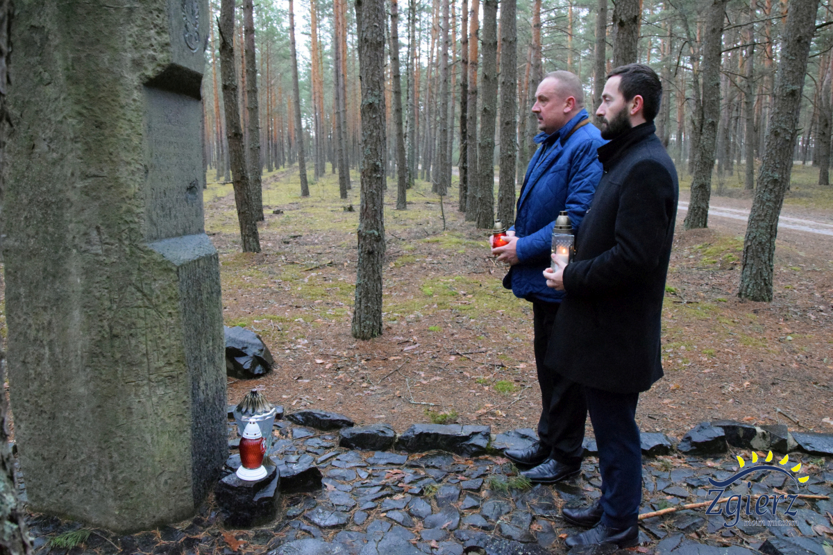 Zapalenie zniczy przy Słupie Pamięci (Cmentarz Legionowy w Kostiuchnówce)
