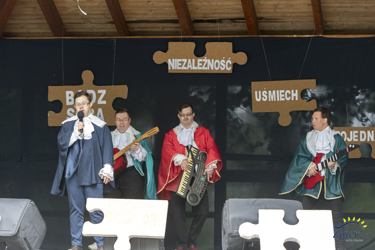Występy artystyczne osób z niepełnosprawnością intelektualną na scenie w parku miejskim