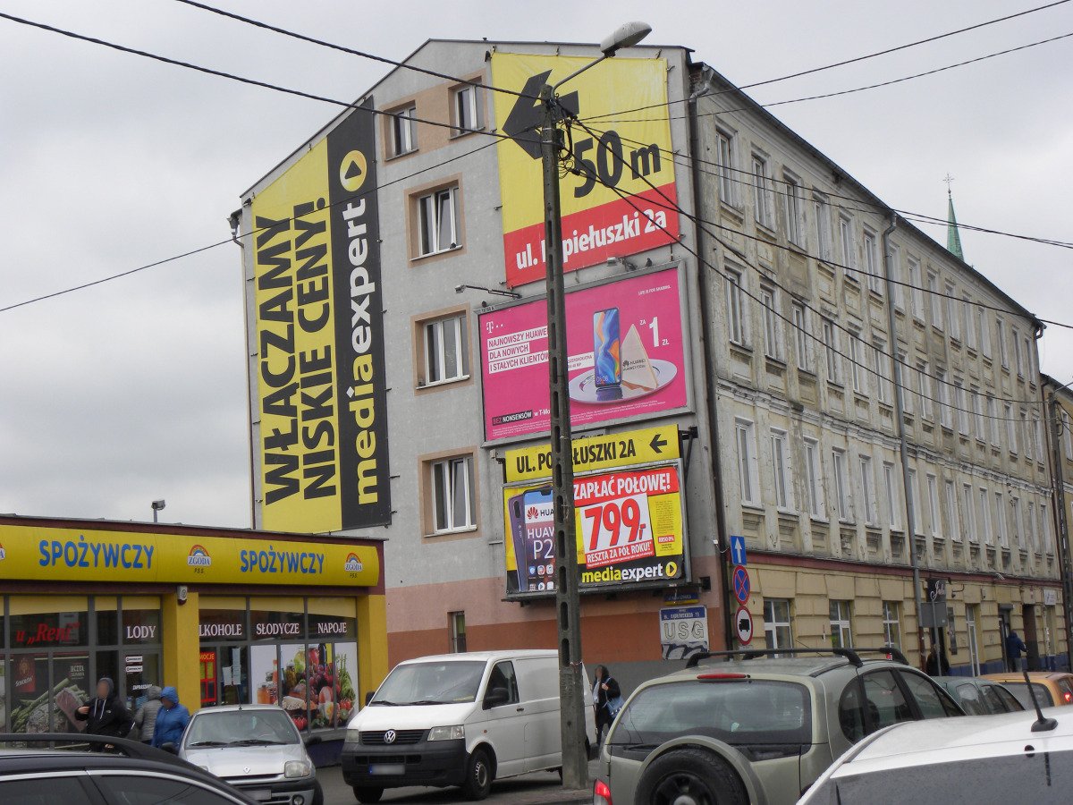 Zasłanianie dużej powierzchni elewacji budynku reklamami