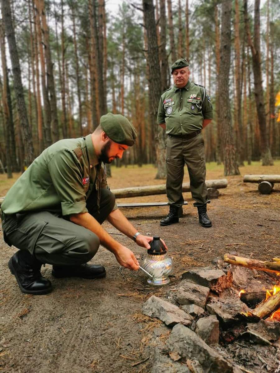 Ceremonia pobrania ognia niepodległości z grobów legionistów w Polskim Lasku