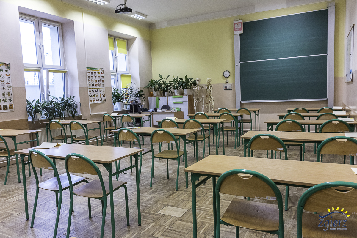 sala lekcyjna przygotowana do egzaminu maturalnego