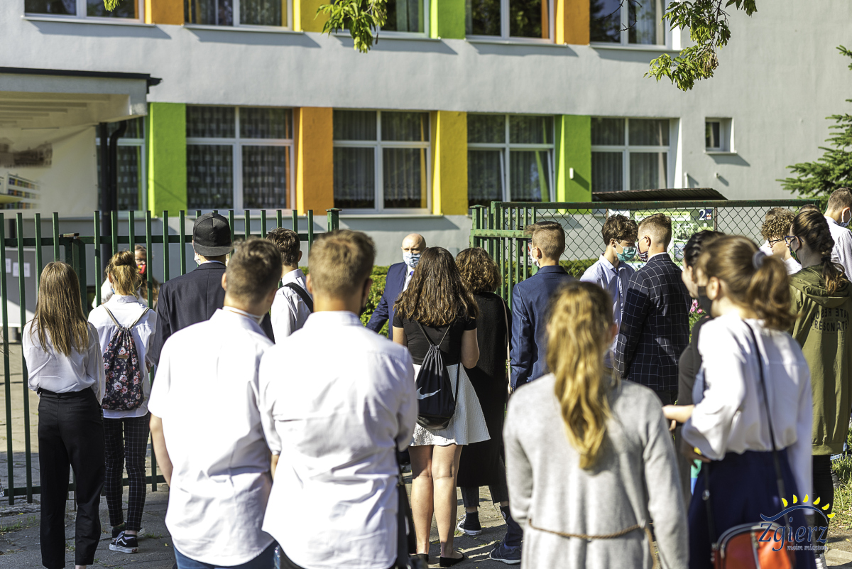 Młodzież przed wejściem na egzamin do Szkoły Podstawowej nr 6