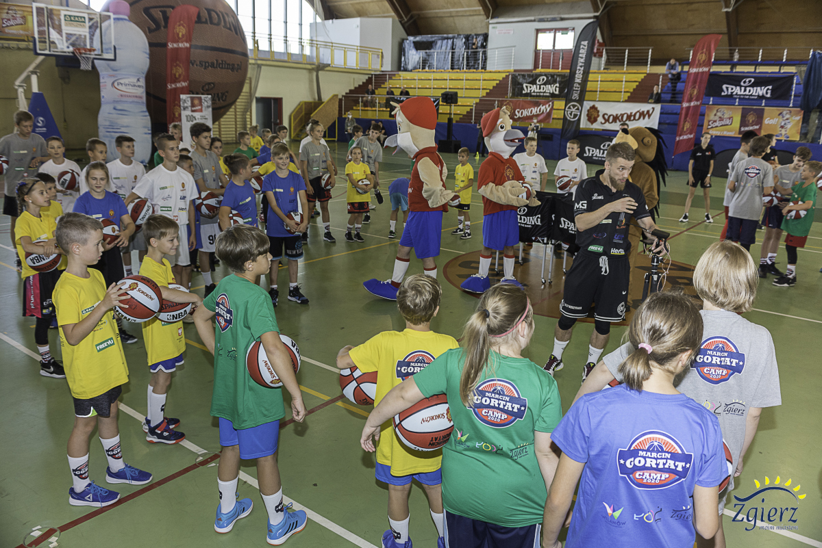 Uczestnicy wydarzenia sportowego Marcin Gortat Camp w hali MOSiR