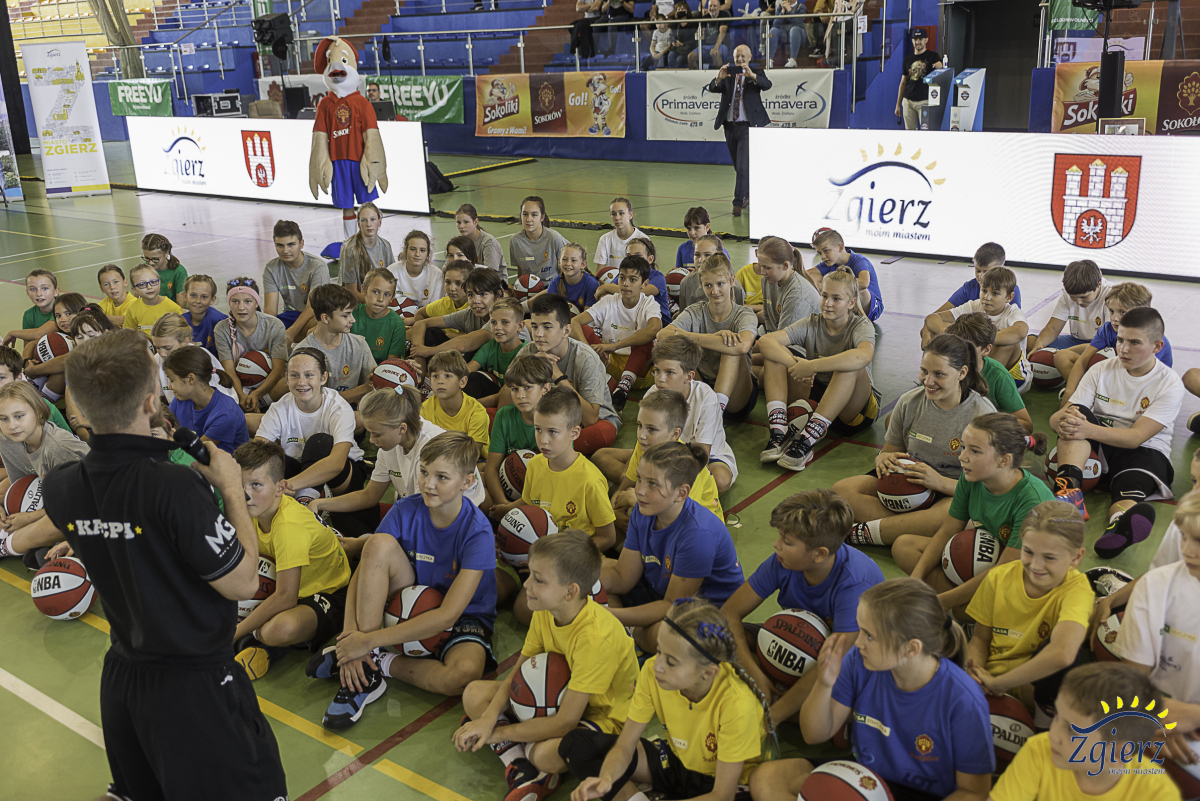 Uczestnicy wydarzenia sportowego Marcin Gortat Camp w hali MOSiR