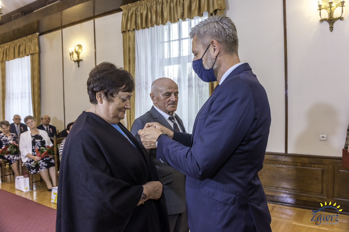 Prezydent Miasta Zgierza wręcza parom medale i kwiaty