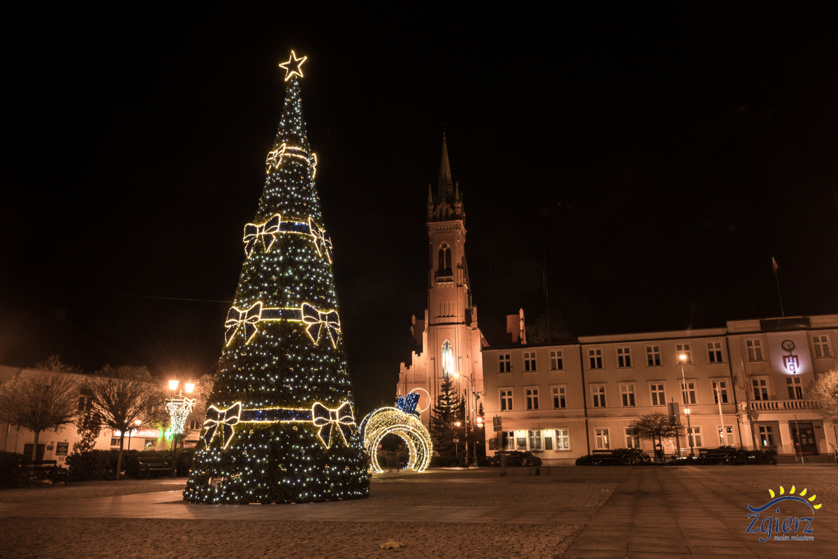 Choinka, bombka na placu Jana Pawła II, w kościół i magistrat