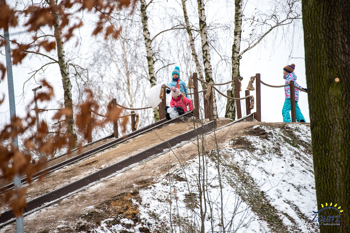 dzieci zjeżdżają na sankach - styczeń 2021 r.