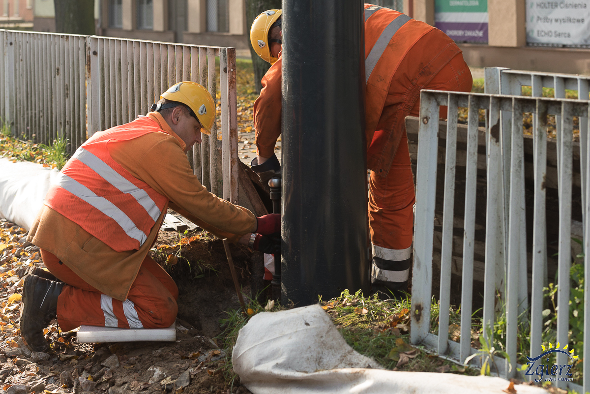 montaż słupów trakcji tramwajowej - 26.10.2020 r.