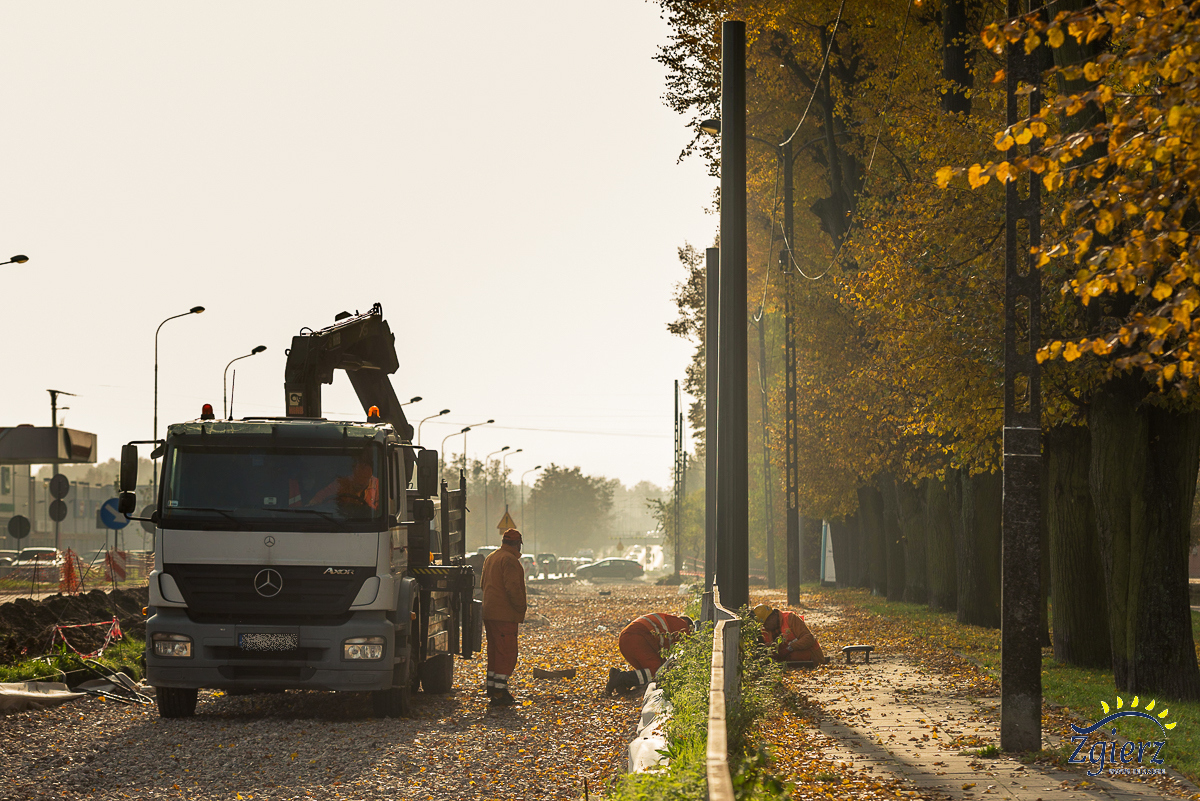 montaż słupów trakcji tramwajowej - 26.10.2020 r.