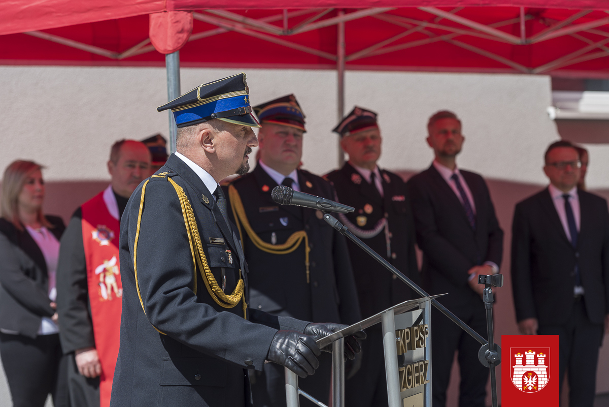 Uroczystość przed budynkiem Państwowej Straży Pożarnej w Zgierzu