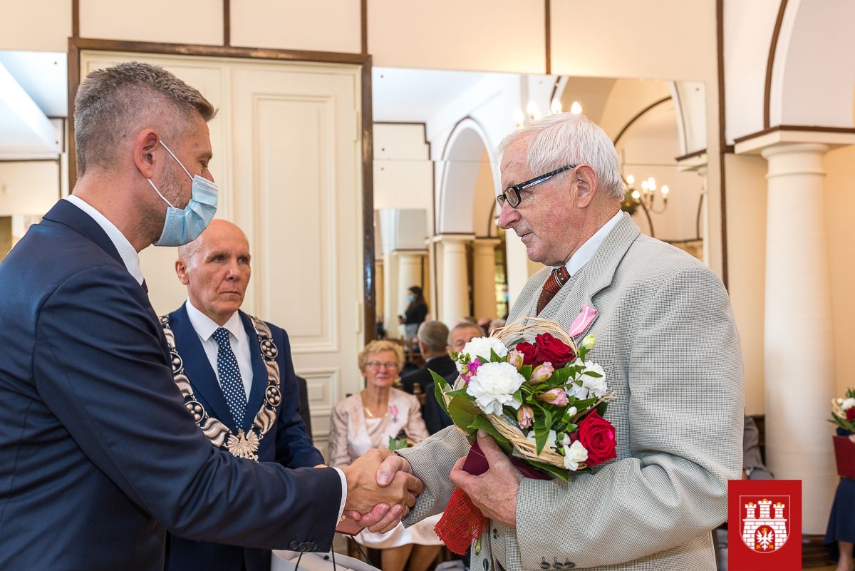 Prezydent Miasta Zgierza i Kierownik USC wręczają kwiaty