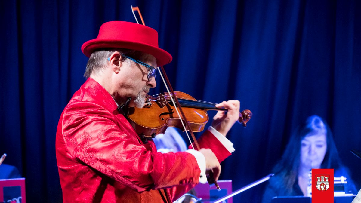 Tomasz Gołębiewski gra na skrzypcach
