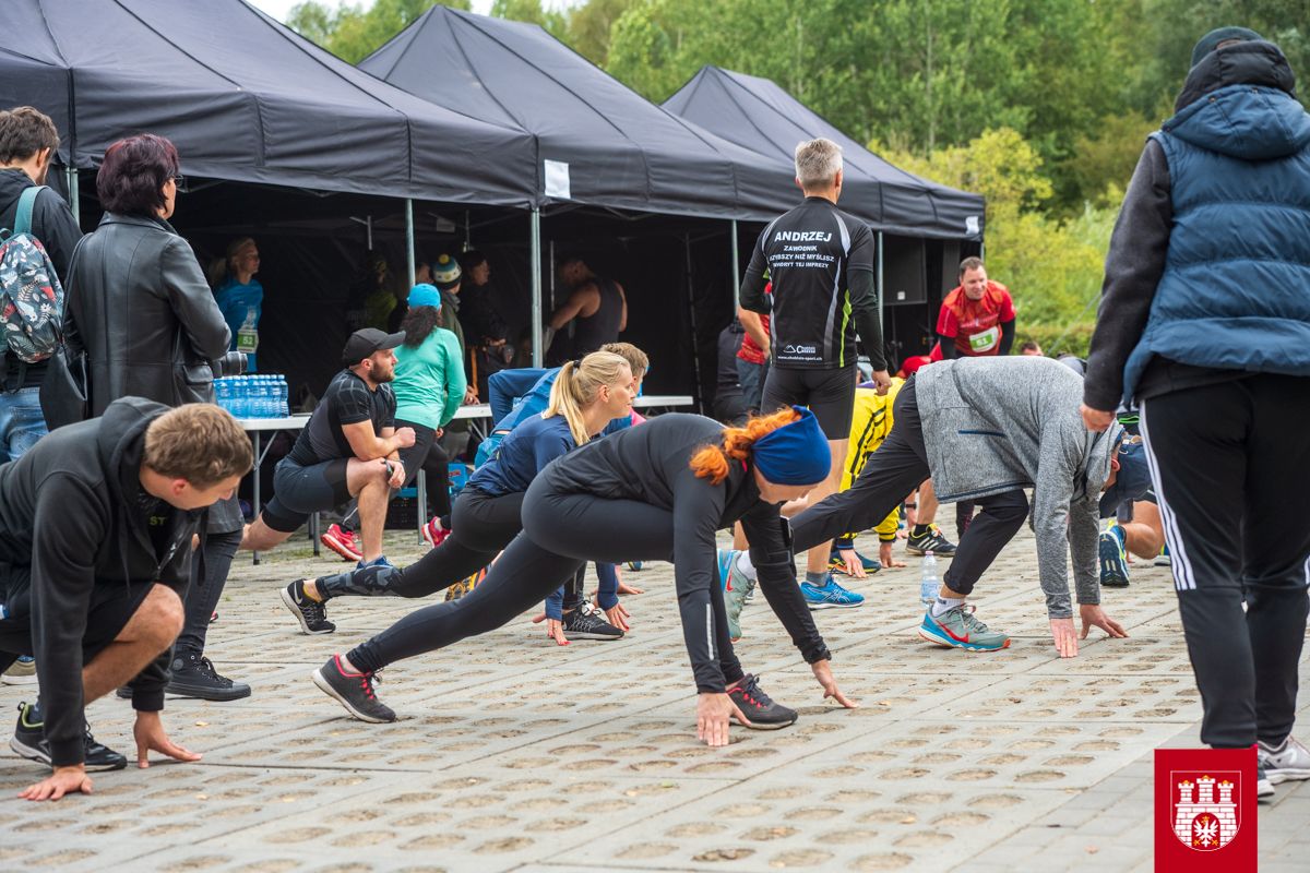 wspólna rozgrzewka przed biegiem