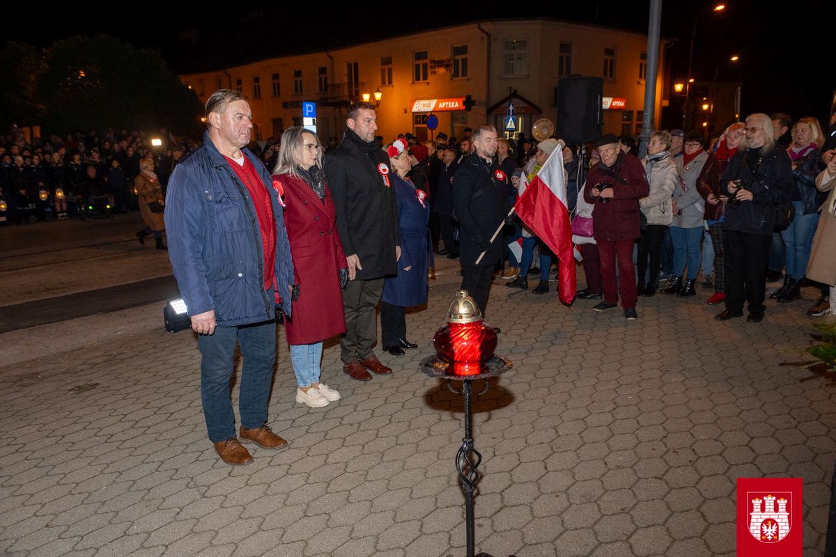 złożenie kwiatów przez delegacje pod tablicami pamiątkowymi umieszczonymi na budynku Urzędu Miasta Zgierza