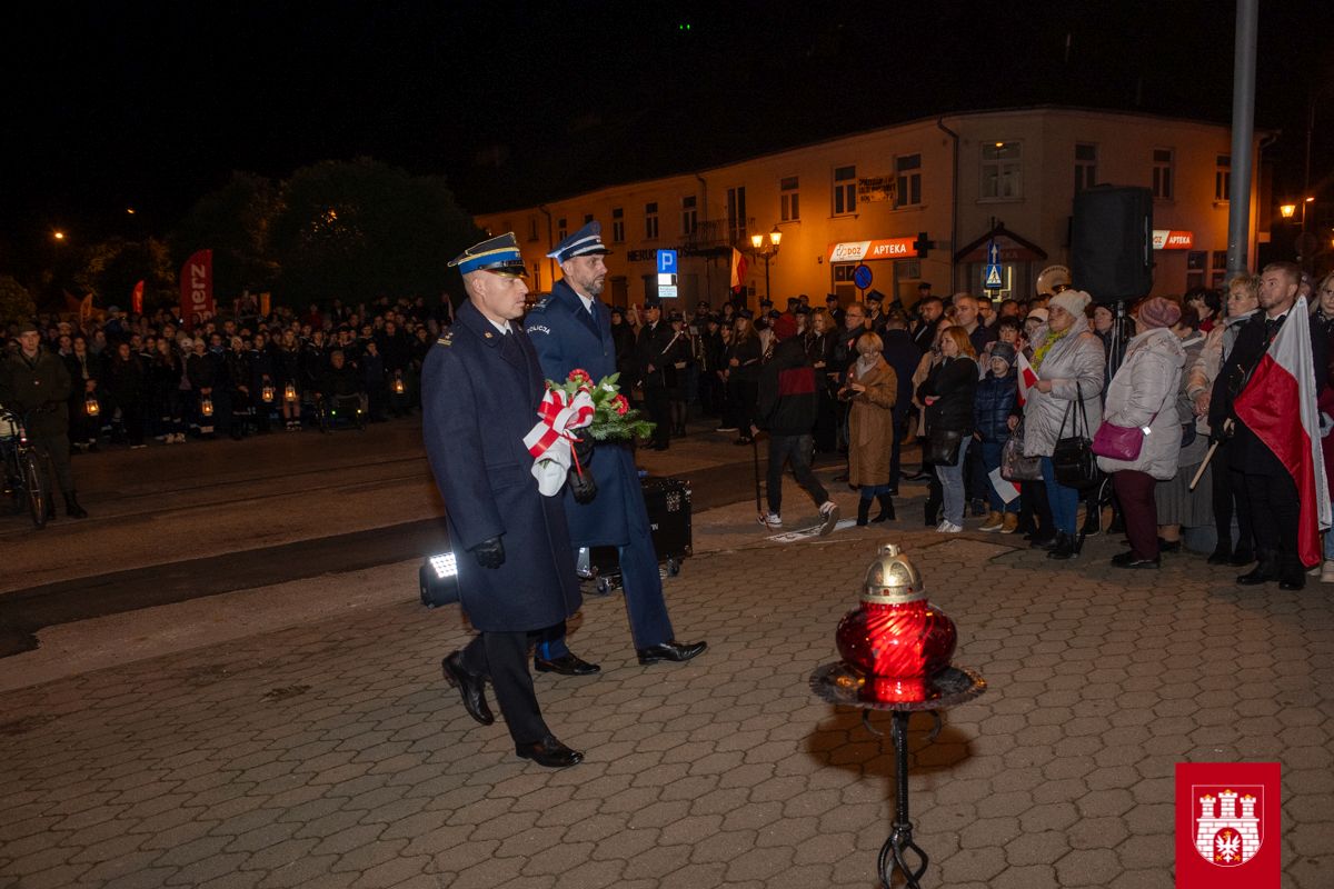 złożenie kwiatów przez delegacje pod tablicami pamiątkowymi umieszczonymi na budynku Urzędu Miasta Zgierza