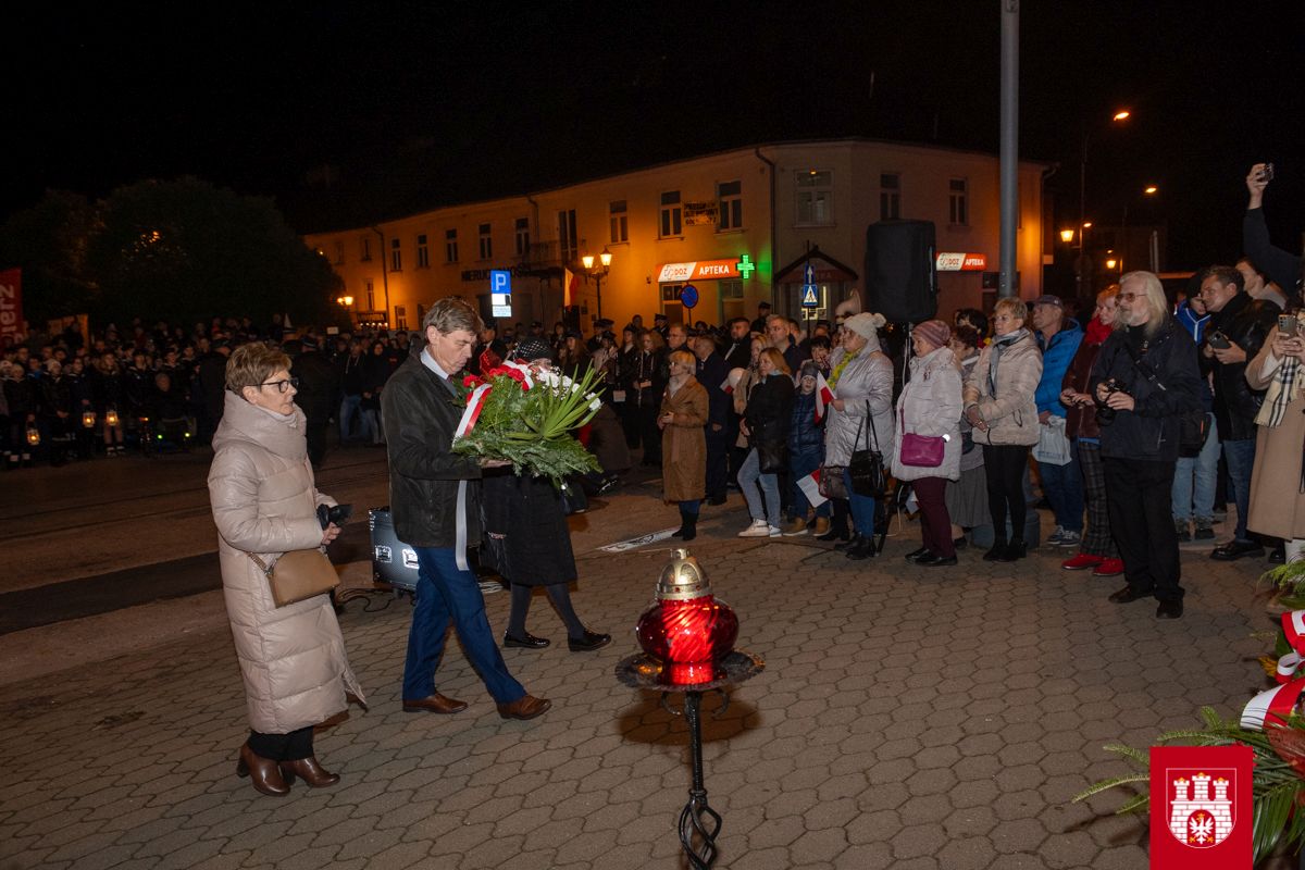 złożenie kwiatów przez delegacje pod tablicami pamiątkowymi umieszczonymi na budynku Urzędu Miasta Zgierza