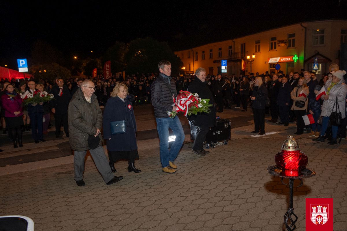 złożenie kwiatów przez delegacje pod tablicami pamiątkowymi umieszczonymi na budynku Urzędu Miasta Zgierza