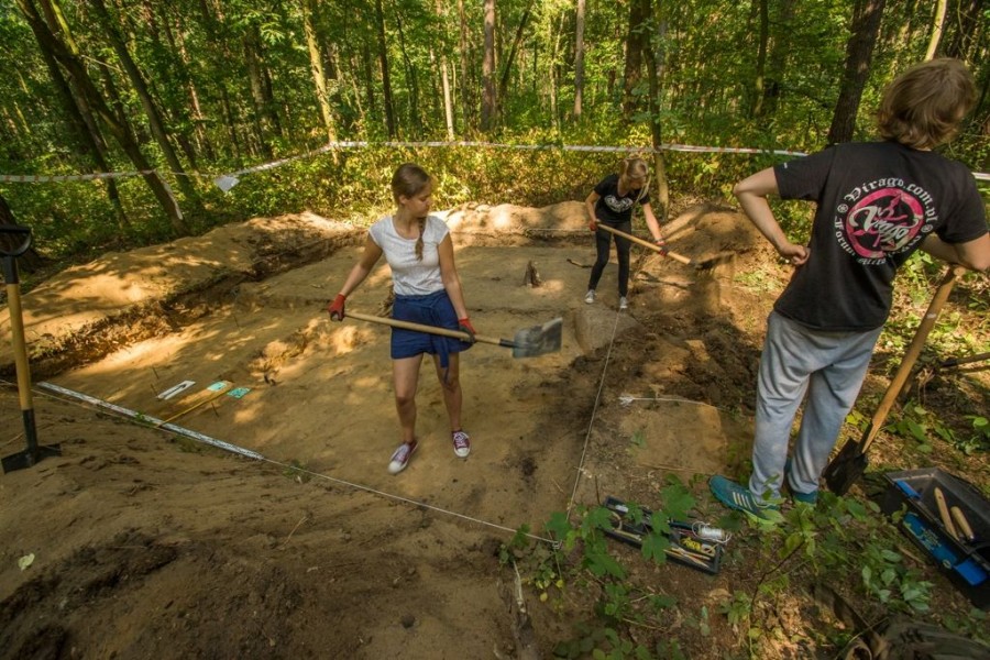 Przy wykopie uczniowie i absolwenci szkoły w Szczawinie