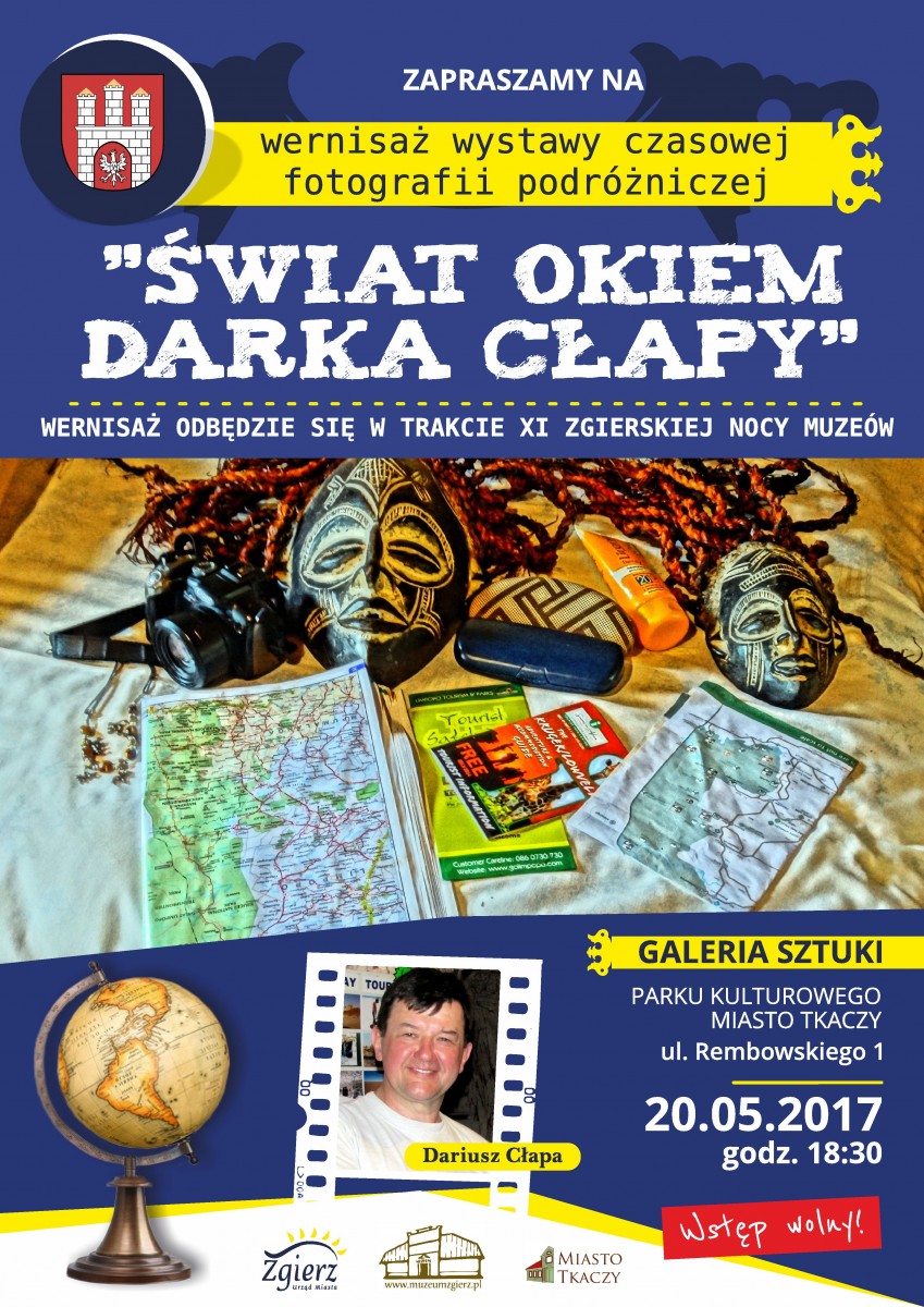 W dniu 20 maja 2017 roku o godz. 18:30 zapraszamy na wernisaż wystawy czasowej fotografii podróżniczej "Świat okiem Darka Cłapy".
