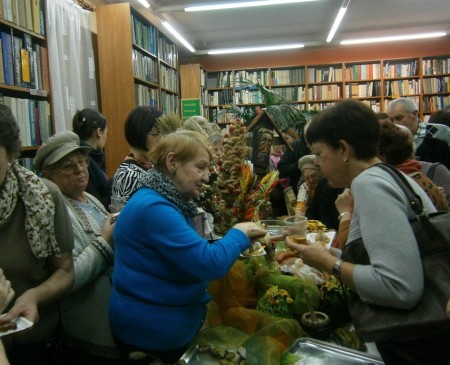 Bibliotekarze wyczarowali niepowtarzalną atmosferę jarmarku kaziukowego, a Goście zaprosili wszystkich do degustacji wileńskich smaków. Było zatem coś dla duszy, ucha, oka i ciała. Spotkanie przebiegło w niezwykle miłej, sympatycznej, niemal rodzinnej atmosferze.