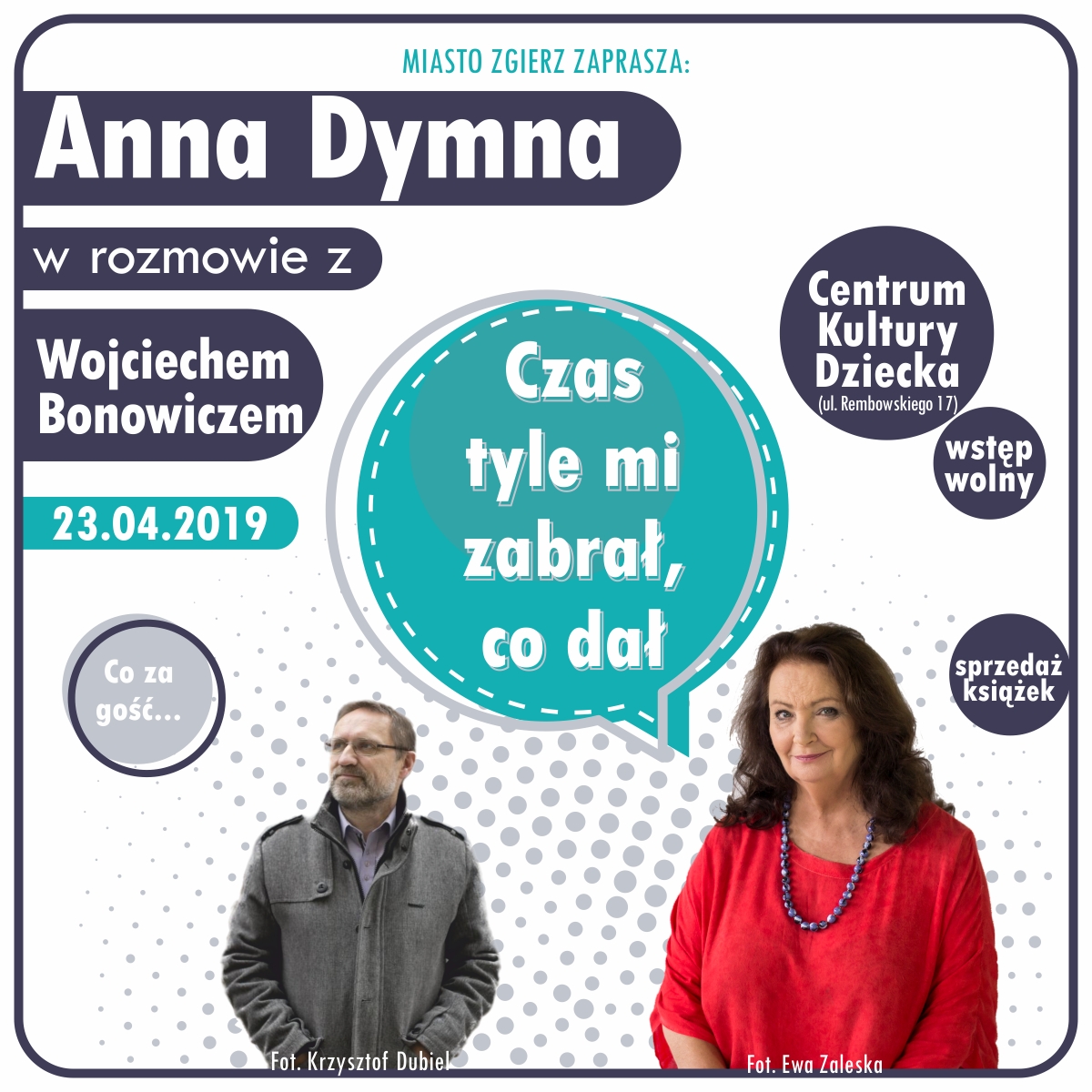 W Zgierzu będziemy świadkami spotkania dwóch wybitnych osobowości. Rozmowę z Anną Dymną przeprowadzi Wojciech Bonowicz - publicysta, autor tomów poetyckich, finalista literackiej Nagrody Nike.