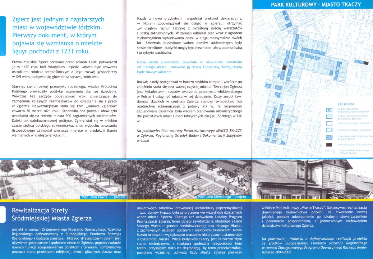 zawiera krótki zarys historyczny oraz projekt rewitalizacji strefy śródmiejskiej wraz z Parkiem Kulturowym "Miasto Tkaczy" oraz "Centrum Kultury Dziecka"w ramach współfinansowania ZPORR.