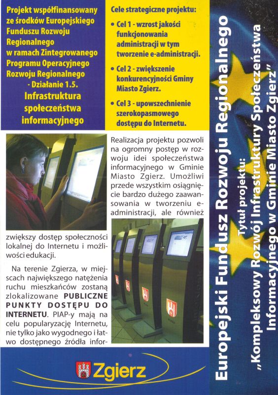 Ulotka "Kompleksowy Rozwój Infrastruktury Społeczeństwa Informacyjnego w Gminie Miasto Zgierz" wraz z płytą "Zgierz on-line" (2008)