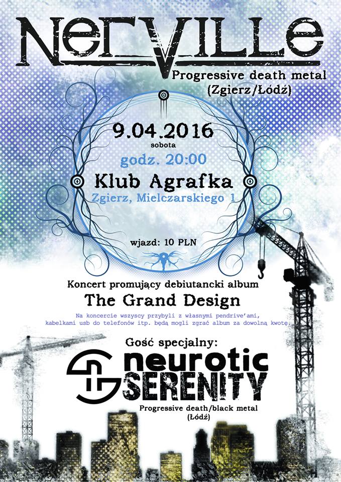 Klub AgRafKa (ul. Mielczarskiego 1) zaprasza 9 kwietnia o godz. 20:00 na koncert zespołu "NERVILLE" + gość specjalny: Neurotic Serenity (bilety: 10 zł)